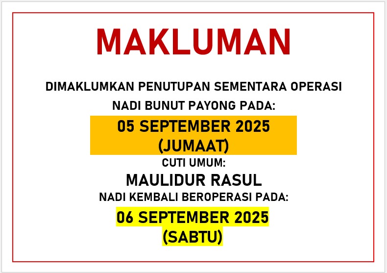 ➡️ NADI Kampung Bunut Payong akan DITUTUP.